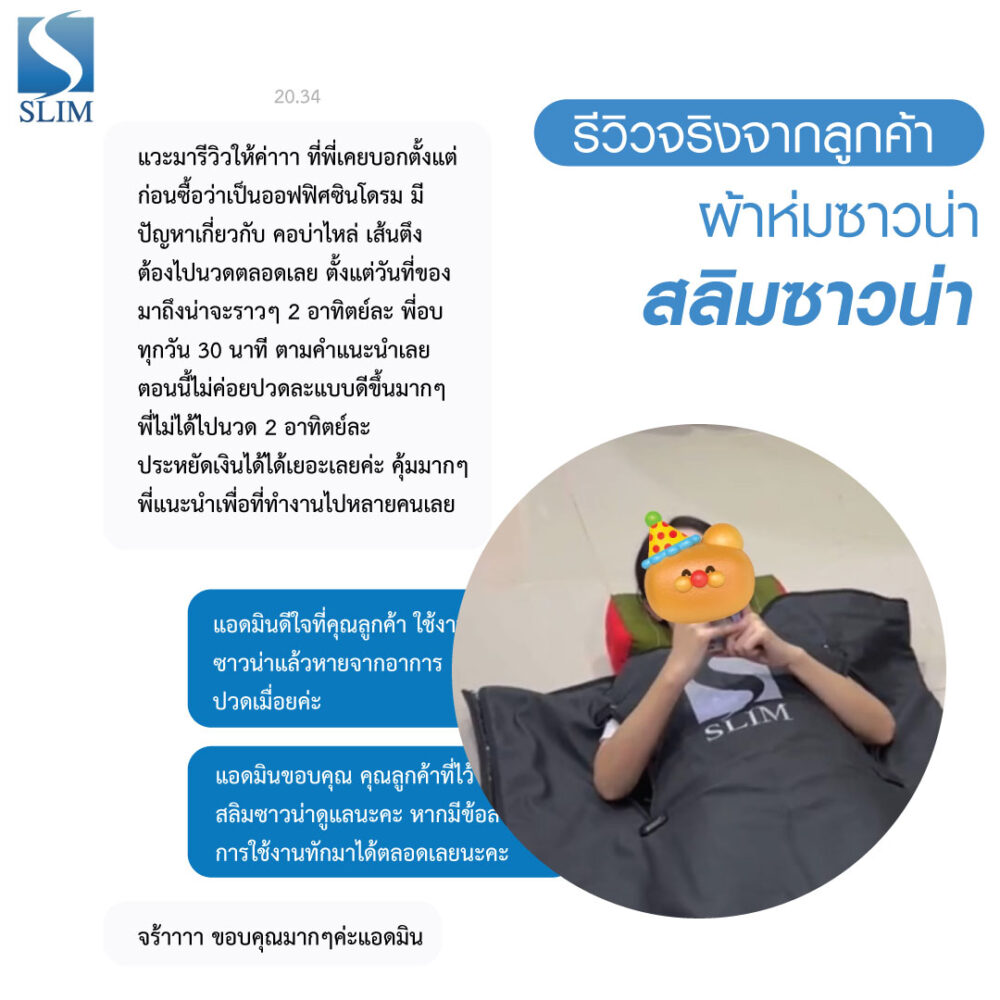 - สลิม ซาวน่า รับประกัน นานถึง 1 ปี พร้อมดูแลตลอดอายุการใช้งาน